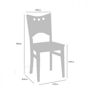 Silla Lalas para comedor con chasis fabricado en madera de haya maciza y reforzado con cuatro escuadras de haya con triple diente y tornillo de acero más dos traviesas laterales.
