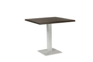 Mesa BI-1 de aluminio anodizado mate con pie central y con niveladores. Disponibilidad de diferentes combinaciones entre base y tabla. Este producto esta recomendado para uso público y doméstico. Uso interior y exterior.