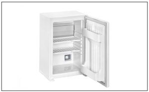 Minibar de absorción Serie E perfecto para habitaciones de hotel. Tiene una capacidad de 30 o 40 litros con autodefrost. El interior esta compuesto por dos bandejas regulables, dos bandejas en la contrapuerta, separador de botellas, termostato y un LED.