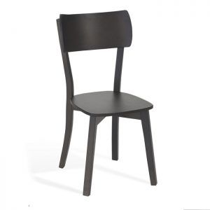 Silla Yara para comedor de hotel con chasis fabricado en madera de haya maciza, reforzado con sistema de contramechonado.