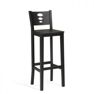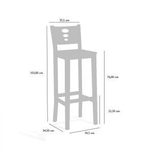 Taburete Elisa para barra de bar con chasis fabricado en madera de haya maciza, reforzado con cuatro escuadras de haya y dos traviesas laterales.